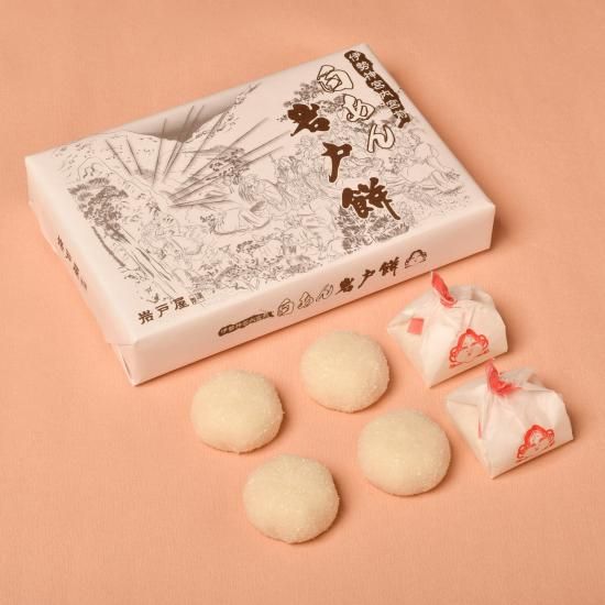 ・白あん岩戸餅:餅米粉(国内製造)、餅米、砂糖、麦芽糖、白小豆、餅粉加工品(餅粉、澱粉)/トレハロース、グリシン、しらこたん白(さけ由来)、酵素、乳化剤 (一部に大豆・さけ・乳成分を含む)
